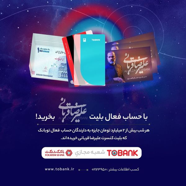 برای خرید بلیت کنسرت علیرضا قربانی و استفاده از خدمات مختلفی بانک گردشگری میتوانید با مراجعه به نشانی اینترنتی https://tobank.ir به راحتی «توبانک» را نصب و از خدمات گوناگون آن استفاده کنید.