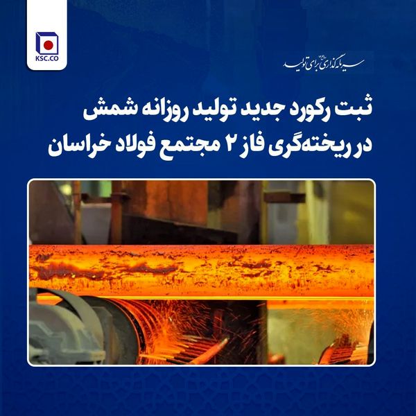 ثبت رکورد جدید تولید روزانه شمش در ریختهگری فاز ۲ مجتمع فولاد خراسان