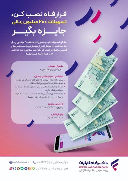بر اساس این گزارش، کاربران سامانه فرا رفاه تا 31 تیرماه سال جاری فرصت دارند در این جشنواره شرکت کنند و از تسهیلات غیرحضوری آن بهرهمند شوند.